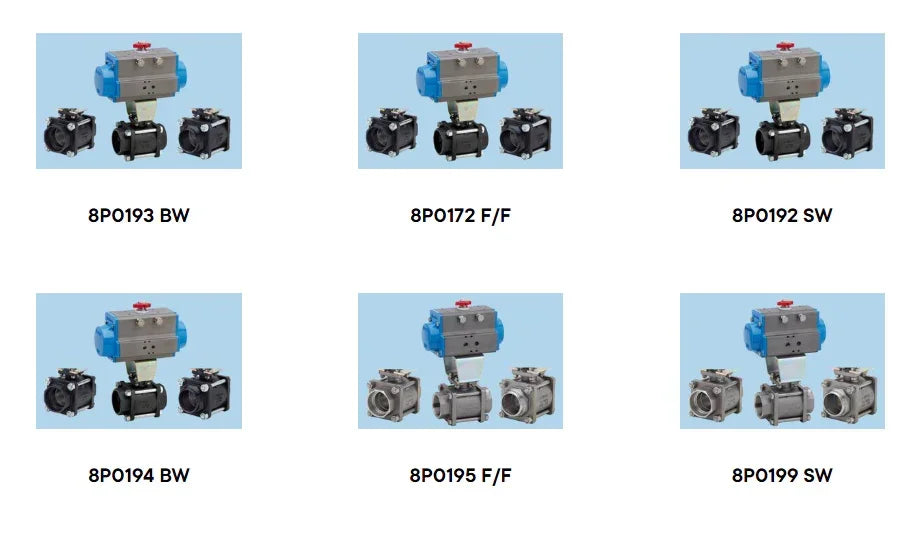 · Actionneurs SR Vanne à boisseau sphérique à passage intégral en acier au carbone 2 voies 3 pièces, extrémités filetées, avec actionneur pneumatique à double effet (710003).