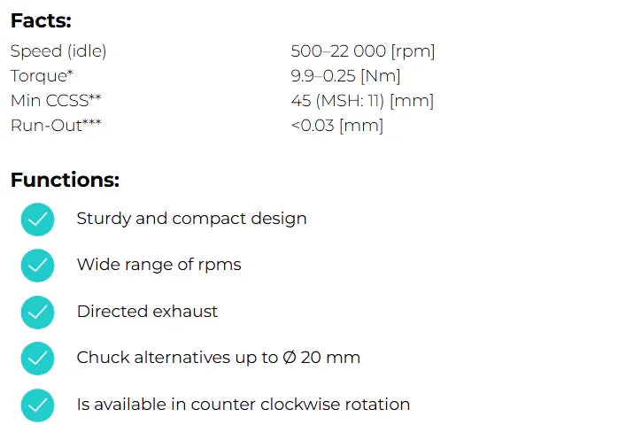 Turbines à air / Moteurs pneumatiques / Broches de perçage