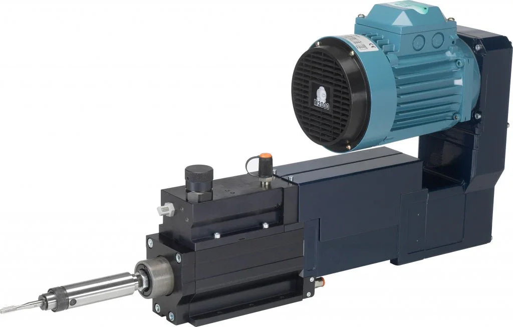 La série BEG 48 est une unité électropneumatique flexible de conception modulaire. Le moteur électrique entraîne la broche, tandis que l'avance est pneumatique. La commande hydraulique permet d'ajuster la vitesse d'avance proportionnellement au pas et au régime. Un collecteur ou une broche de taraudage assure la compensation de longueur nécessaire. La série est disponible avec un mandrin conique JT2 ou un mandrin ER32 intégré, ainsi qu'avec des têtes multibroches.