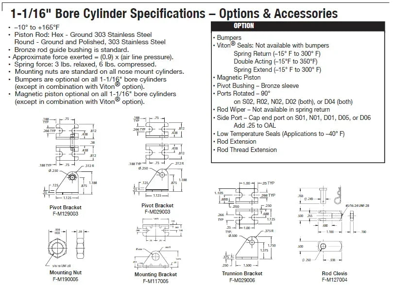 Série F - Support de montage et accessoires pour vérins d'alésage 1 1/16"