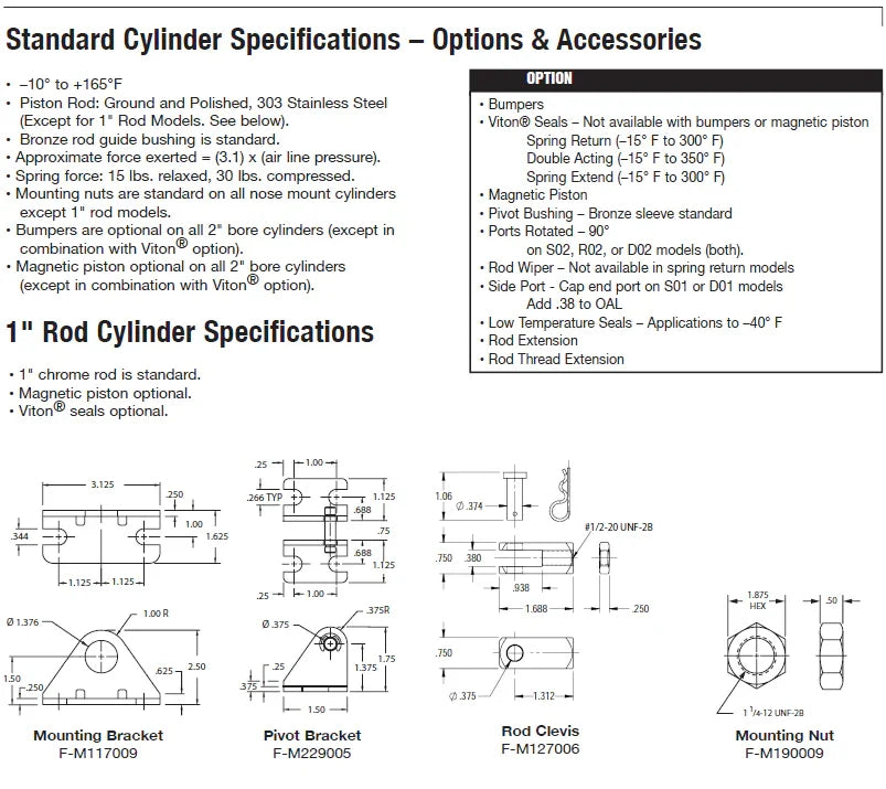 Série F - Support de montage et accessoires pour vérins d'alésage de 2"