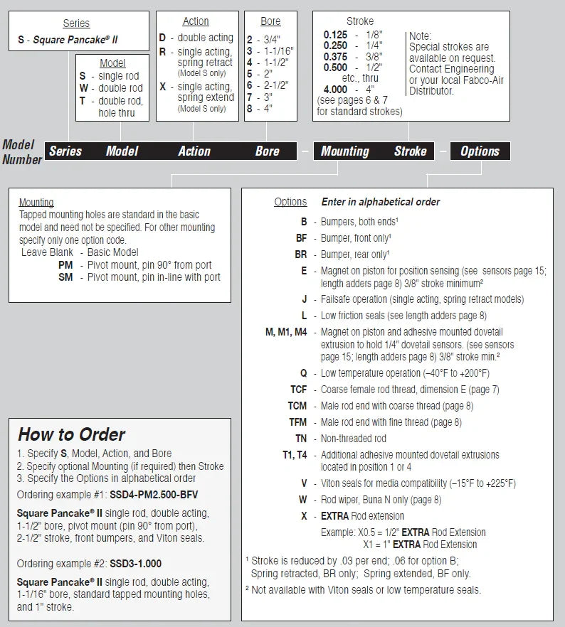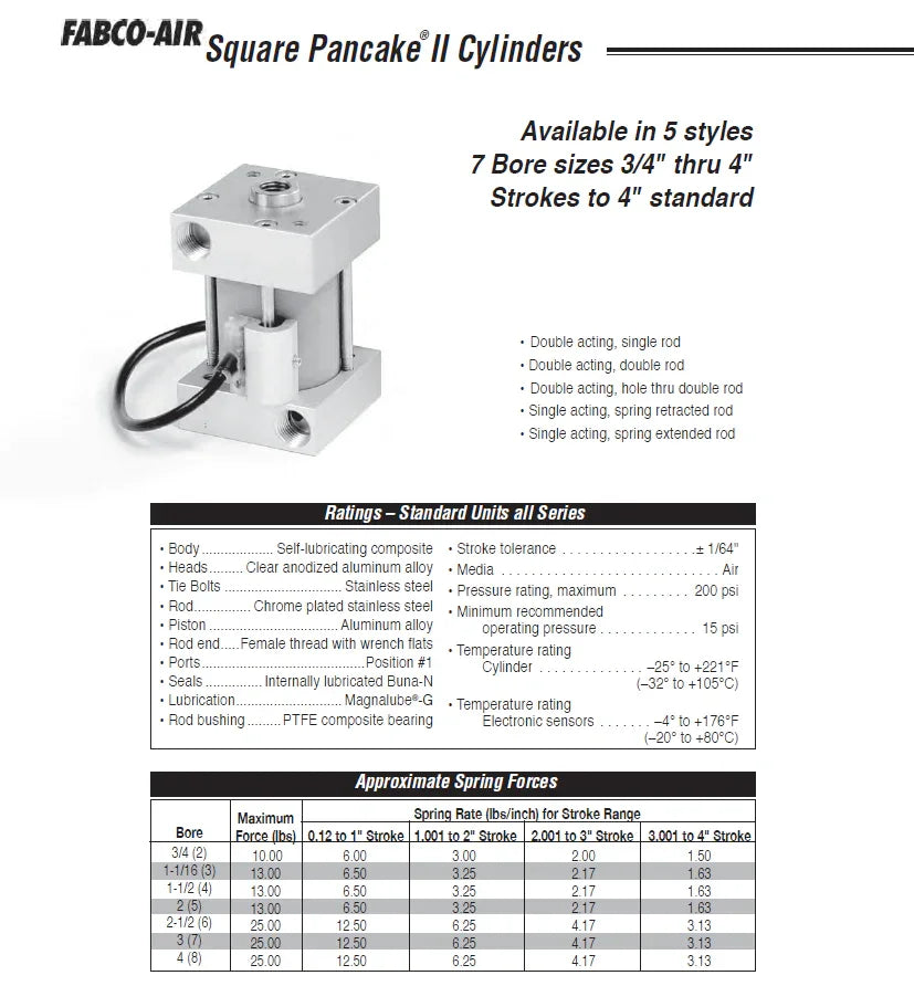 - Standard : Sept tailles d'alésage de ¾ à 2 pouces et courses jusqu'à 4 pouces