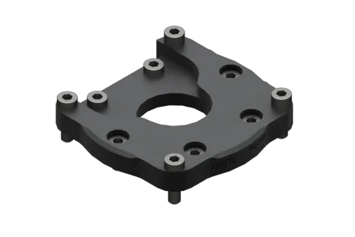 Bride de fixation EQC100-A pour robots avec interface ISO 9409-1-80-4-M8. Vis, manchons et goupilles de centrage inclus.