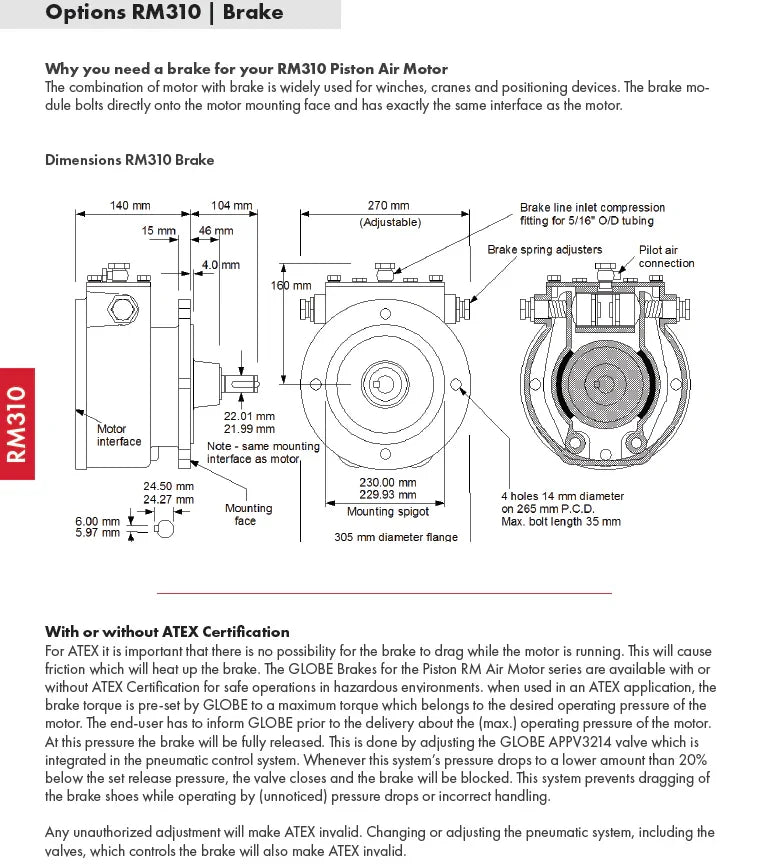 Frein à piston pour moteur pneumatique GLOBE RM310