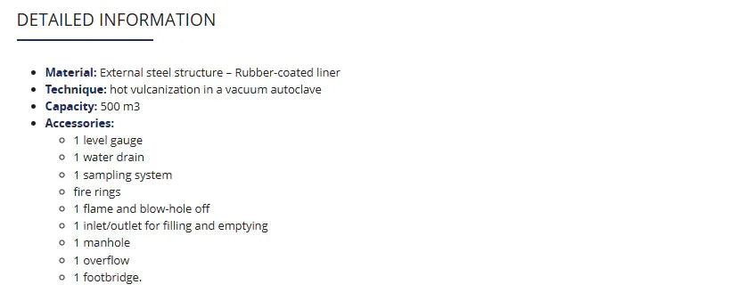 - Une doublure interne vulcanisée à chaud en élastomère renforcé de fibres textiles pour le stockage,