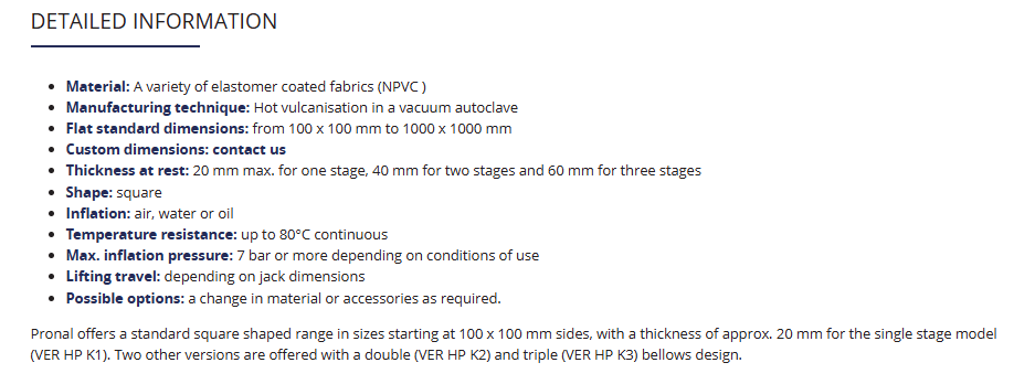 Le vérin gonflable, ou coussin de levage, est un système pneumatique composé d'élastomères ou de plastomères.
