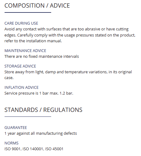 Deux longueurs sont disponibles en standard : 1 320 mm et 1 460 mm. Un revêtement alimentaire peut être ajouté aux pinces sur demande. Selon votre installation, les anneaux gonflables seront adaptés avec des renforts, une hauteur d'anneau fileté, etc.