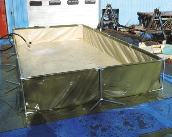 Ces rétentions flexibles sont équipées d'une armature métallique en acier galvanisé. Composée de tubes et de joints identiques, elle est facile à assembler. Le déploiement est simple et rapide (environ 20 minutes) et l'installation ne nécessite que deux personnes.