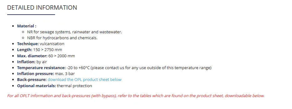L'obturateur gonflable standard (OPL) est conçu pour obturer temporairement ou définitivement les canalisations, les égouts ou les gouttières. Souple et léger, il assure une étanchéité rapide, étanche et fiable.