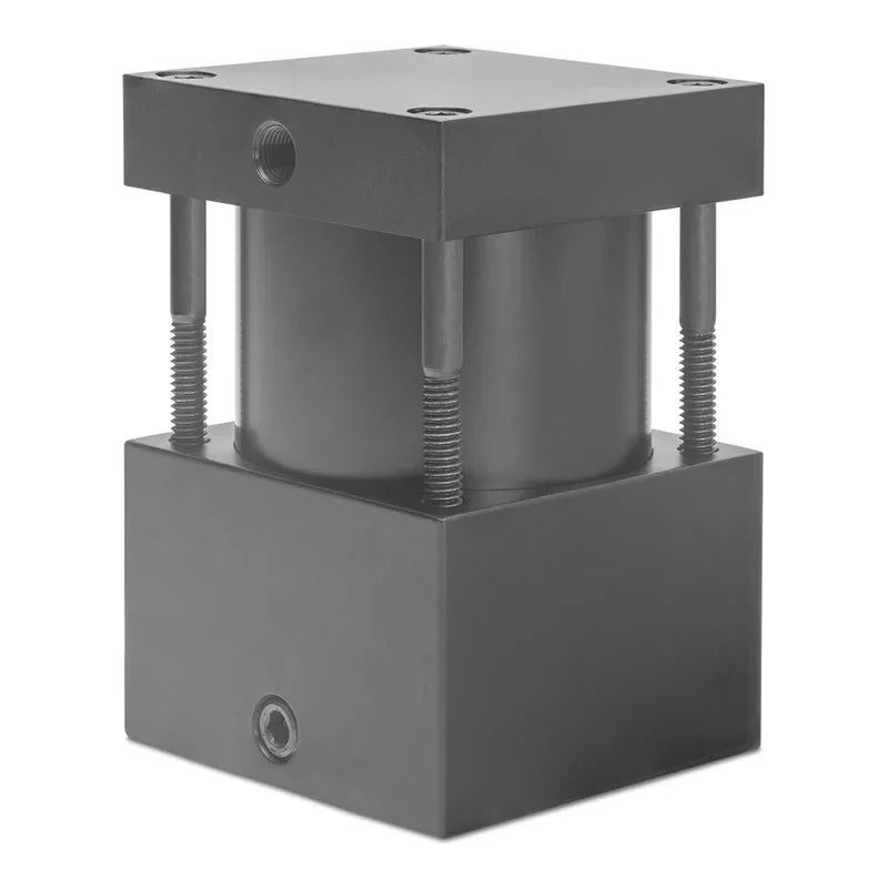 Les multiplicateurs air/huile convertissent l'air de l'atelier, jusqu'à 100 psi, en pression hydraulique. La pression d'air appliquée à l'entrée d'air déplace un piston selon un rapport prédéfini, lequel est transféré au fluide hydraulique stocké dans le carter du multiplicateur. Un ressort interne rétracte le piston, aspirant l'huile hydraulique d'un réservoir selon les besoins. La chambre à ressort ventilée élimine la contre-pression.