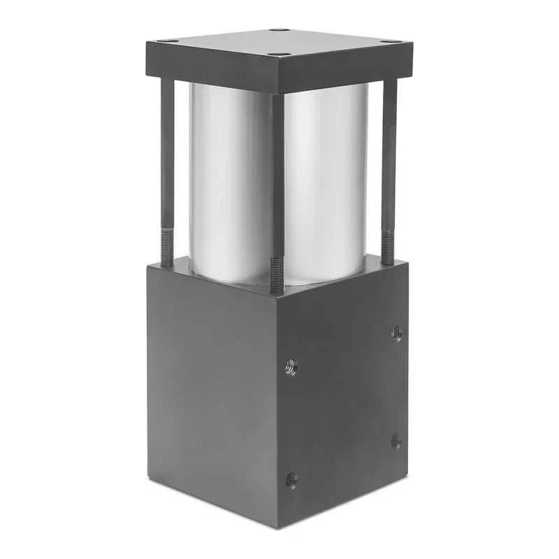 Les multiplicateurs air/huile convertissent l'air de l'atelier, jusqu'à 100 psi, en pression hydraulique. La pression d'air appliquée à l'entrée d'air déplace un piston selon un rapport prédéfini, lequel est transféré au fluide hydraulique stocké dans le carter du multiplicateur. Un ressort interne rétracte le piston, aspirant l'huile hydraulique d'un réservoir selon les besoins. La chambre à ressort ventilée élimine la contre-pression.