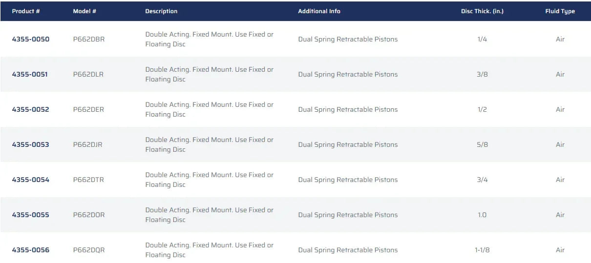 Série 662, frein à disque à étrier pneumatique à double effet avec pistons rétractables à ressort, dimensionné pour un disque de frein de 1,0 pouce d'épaisseur.