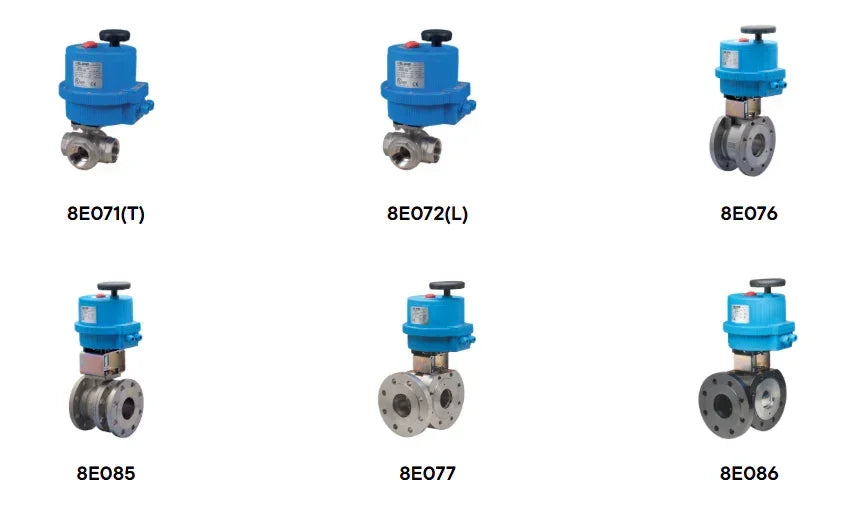 Electric actuator with 3 way, Stainless steel Split body diverter ball valve, reduced port ANSI 150 (Valpres 776018).