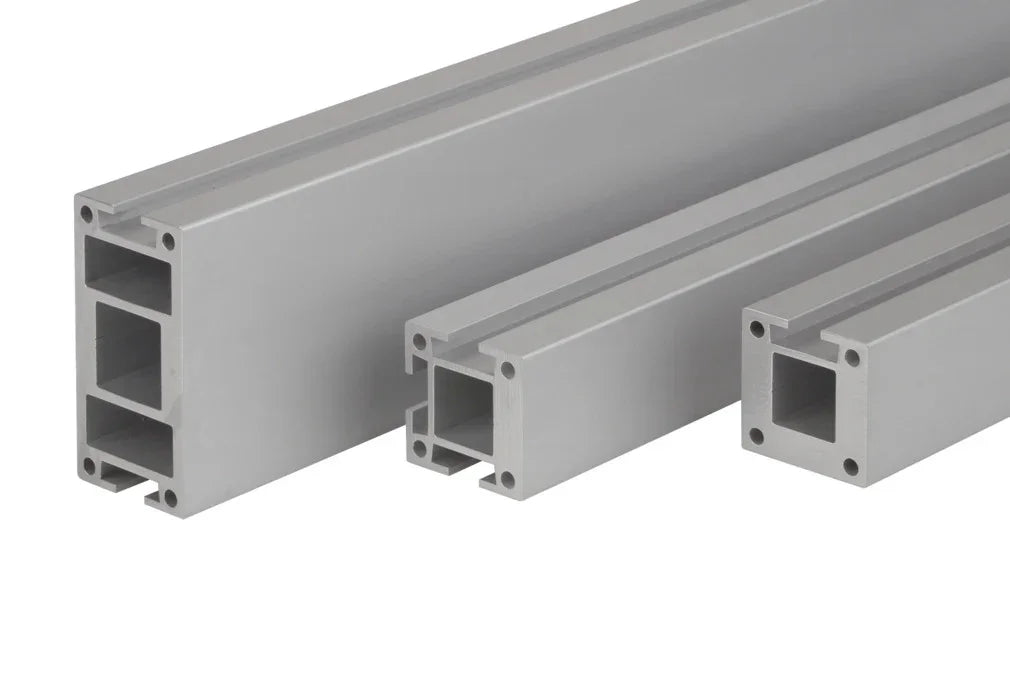 Aluminum sections and accessories form a complete modular system with which customized beams can be constructed.